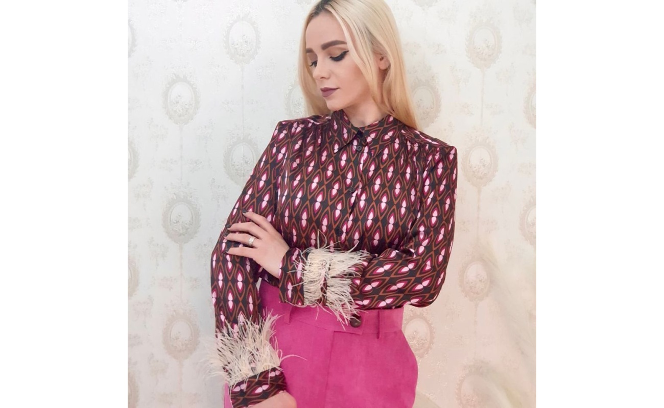 Cămașa office roz/visiniu ,detalii pene pe mansete,Imperial