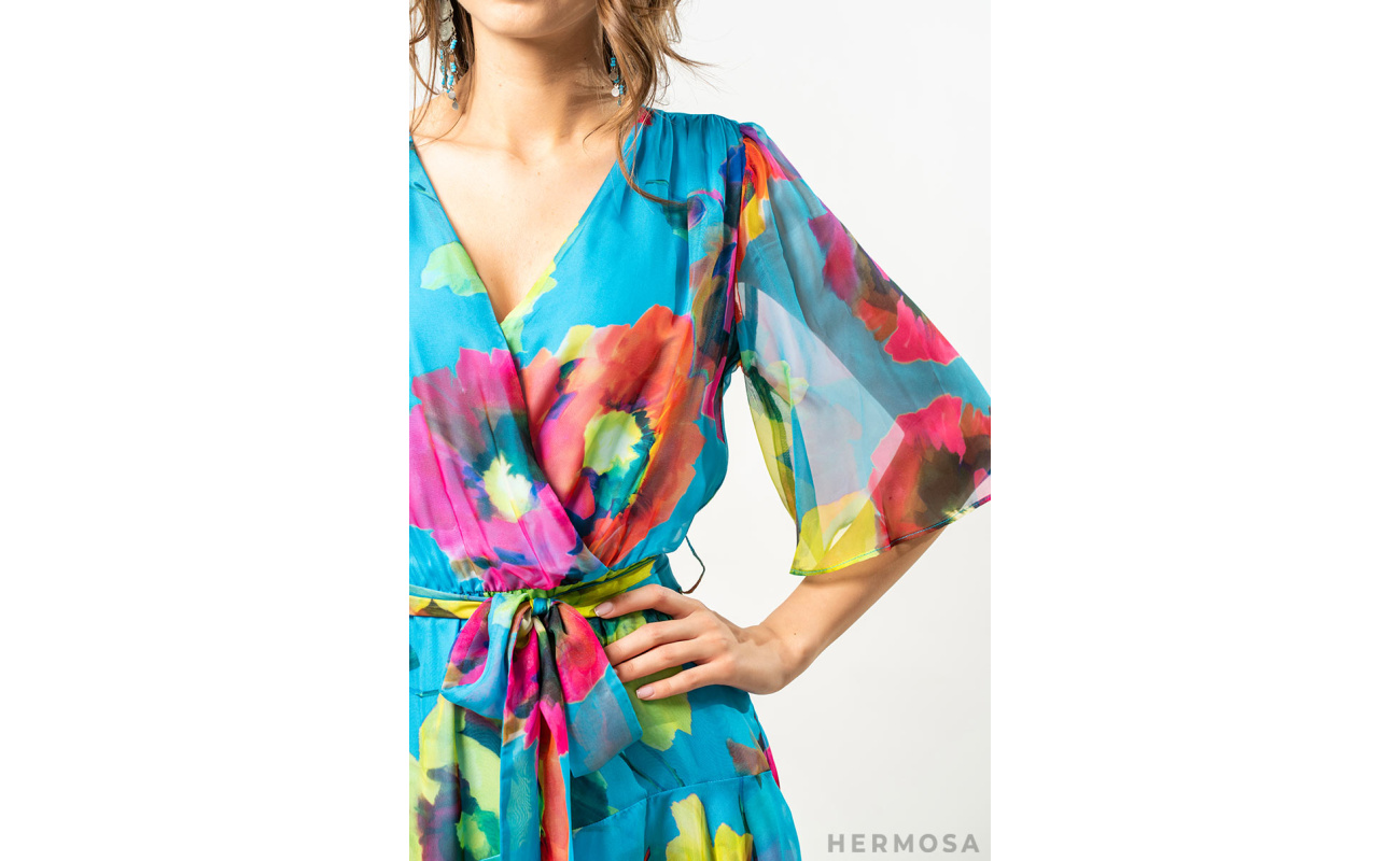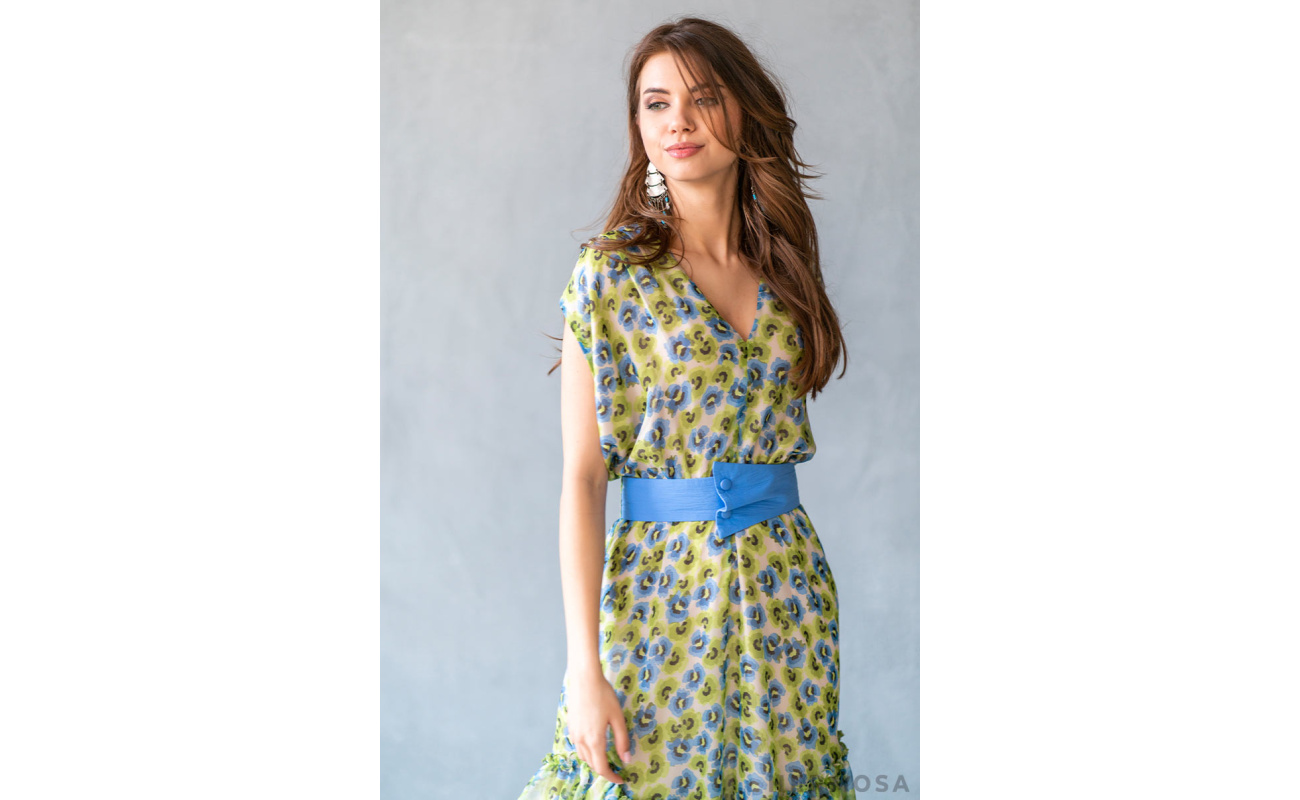 Rochie roz fucsia cu guler pe umeri,lungime midi