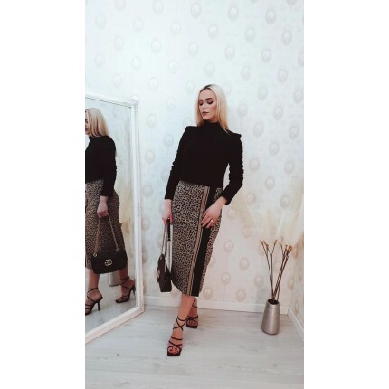 Fustă tricot animal print,cu slit frontal,Imperial