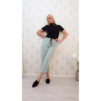 Pantaloni bej,eleganti,cu funda la glezne si talie inalta