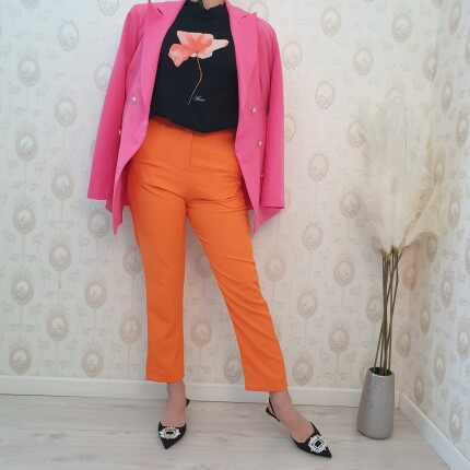 Pantaloni casual, culoare portocaliu,cu buzunare laterale