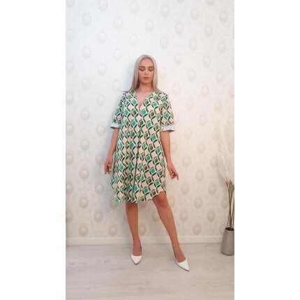 Rochie portocalie din bumbac,cu maneci bufante si volanase